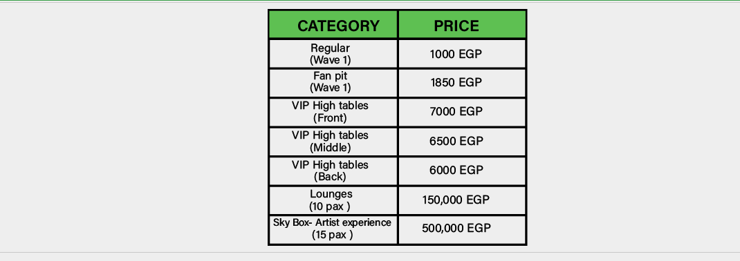 وطرحت شركة "تذكرتي"، أسعار تذاكر الحفل، وجاءت على النحو التالي: