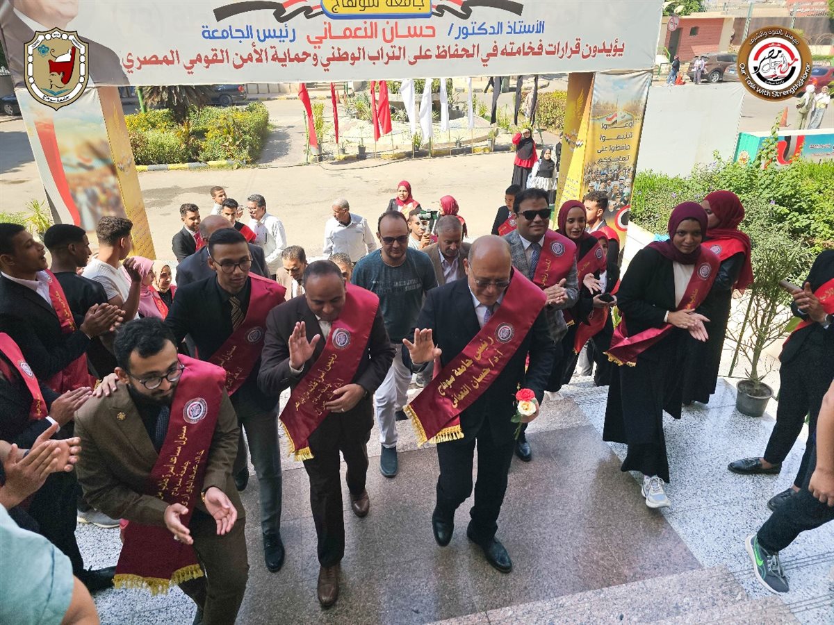 نظمت أسرة "طلاب من أجل مصر" بجامعة سوهاج احتفالية كبرى بمناسبة بدء العام الدراسي الجديد، في بادرة تعكس روح الانتماء والإيجابية لدى الشباب الجامعي، حيث قدمت الأسرة التهنئة لقيادات الجامعة وعلى رأسهم الأستاذ الدكتور حسان النعماني رئيس الجامعة، بحضور الأستاذ الدكتور خالد عمران نائب رئيس الجامعة لشئون خدمة المجتمع وتنمية البيئة ورئيس الأسرة، والدكتور محمود خليل المستشار الإعلامي للجامعة ونائب رئيس الأسرة.