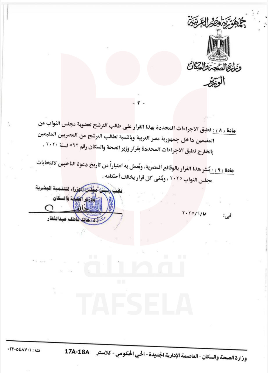 وزير الصحة يعتمد الكشوفات الطبية لمجلس النواب 2025 (انفراد)