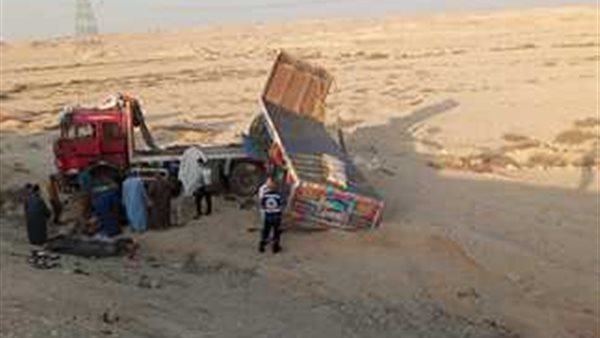 مصرع شخص وإصابة 5 في انقلاب سيارة نقل بطريق الصعيد الصحراوي بالمنيا