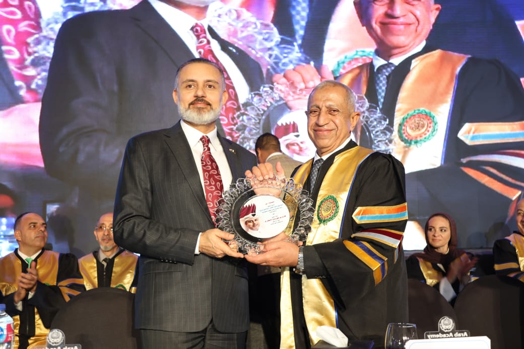 وفي لفتة تقديرية، كرّم رئيس الأكاديمية العربية للعلوم والتكنولوجيا، السفير طارق الأنصاري، تقديرًا لدعمه المستمر لمسيرة التعاون الأكاديمي العربي، ولدوره في تعزيز العلاقات الثنائية بين جمهورية مصر العربية ودولة قطر، وجهوده في دعم العمل العربي المشترك داخل جامعة الدول العربية.