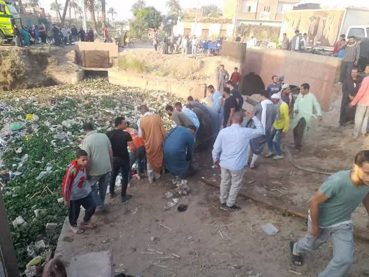 مصرع تلميذة وإصابة 10 آخرين في انقلاب تروسيكل بترعة بأسيوط (صور)