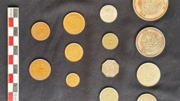 كما عثر بداخلها على 13 قطعة نقدية من فئات مختلفة، تراوحت ما بين المليمات والعملات الذهبية من فئة 100 قرش.