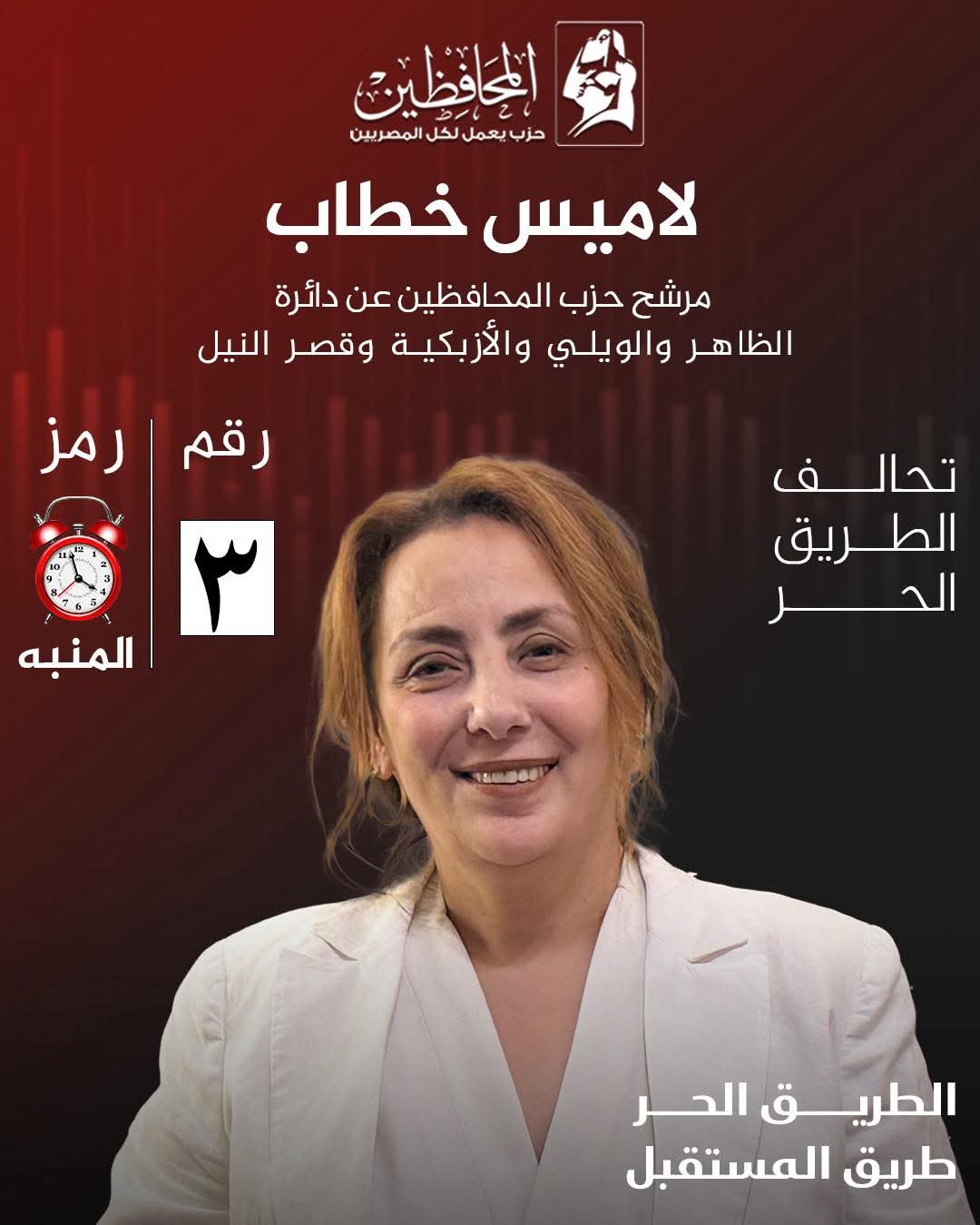 المهندسة لاميس عبد العليم خطاب الدائرة الثالثة عشر قسم الظاهر رمز المنبه.