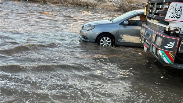 تعطل حركة المرور بالأوتوستراد بعد كسر ماسورة مياه رئيسية بطرة