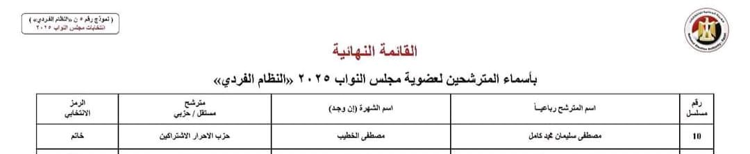 يذكر أن الهيئة الوطنية للأنتخابات القوائم النهائية لمرشحي انتخابات مجلس النواب 2025 بمحافظة الفيوم ، عقب انتهاء فترة تلقي الطعون والفصل فيها، استعدادًا لإجراء الانتخابات اوائل شهر نوفمبر المقبل، وضمت كشوف بندر ومركز الفيوم أسم وصفة ورمز المرشح المحبوس .