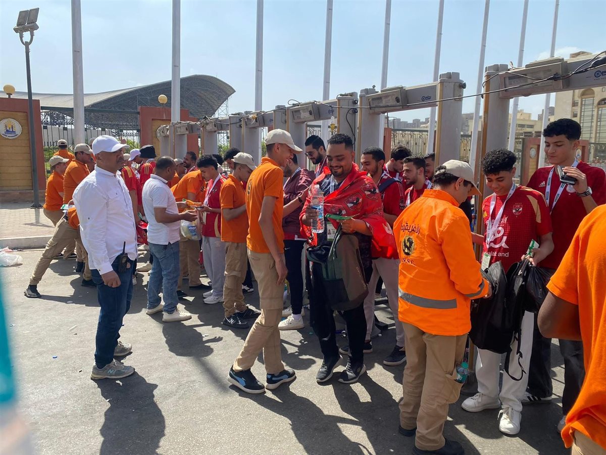 وشكلت الأطقم الأمنية التابعة للمجموعة الإفريقية فرقاً متخصصة لتأمين مداخل الاستاد وأبوابه الرئيسية، وتنظيم عملية دخول الجماهير بما يضمن الانسيابية الكاملة ومنع اصطحاب أي مواد محظورة خاصة الشماريخ والألعاب النارية.
