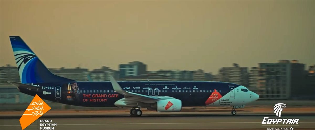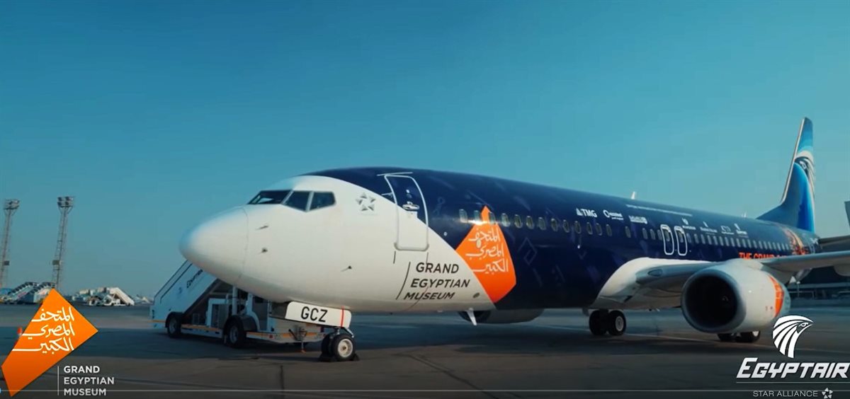 مصر للطيران تضيء السماء.. طائرة مزينة بشعار المتحف في خطوة احتفالية جديدة