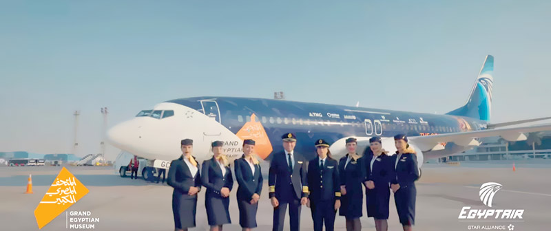 وامتدت الحملة إلى بث فيلم ترويجي ووضع بانرات دعائية داخل استراحات مصر للطيران في مطار القاهرة الدولي، بالإضافة إلى مكاتب الشركة في مصر ومختلف دول العالم، ليكون حلقة تعريفية متكاملة لكل زائر يبدأ رحلته من الجو وصولًا إلى أرض المتحف، بما يعزز حضور الحملة على نطاق واسع ويضمن وصول رسالتها إلى المسافرين والسائحين الدوليين، فضلًا عن استقبال ونقل العديد من الوفود الرسمية المشاركة في الافتتاح عبر خطوطها الجوية.
