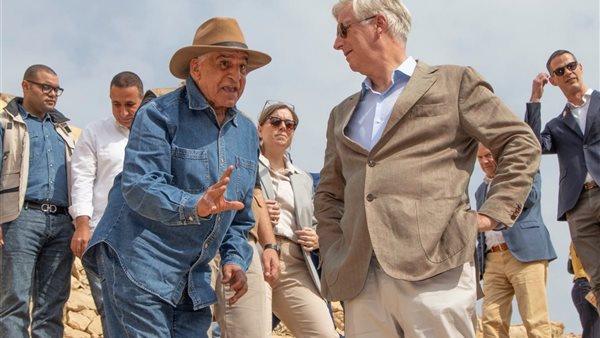 الملك فيليب ملك بلجيكا يزور منطقة سقارة ويشيد بالاكتشافات الأثرية برفقة الدكتور زاهي حواس