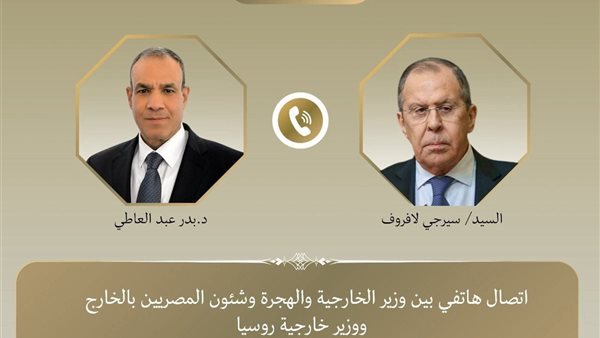 جرى اتصال هاتفي، يوم الاحد ، بين د. بدر عبد العاطي وزير الخارجية والهجرة وشئون المصريين بالخارج، وسيرجي لافروف وزير خارجية روسيا الاتحادية، وذلك في إطار التشاور المستمر بين البلدين حول العلاقات الثنائية والقضايا الإقليمية والدولية ذات الاهتمام المشترك.