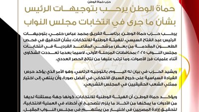 كما يجدد الحزب تأكيده على إعلاء إرادة الشعب المصري من خلال دعم تشكيل برلمان متوازن يعبر بصدق عن الناس، ويعكس تنوع المجتمع، ويستحق ثقتهم، ويعمل من أجل مصالحهم الحقيقية، بما يتسق مع رؤية الدولة في بناء مؤسسات قوية تستند إلى الديمقراطية وسيادة القانون.