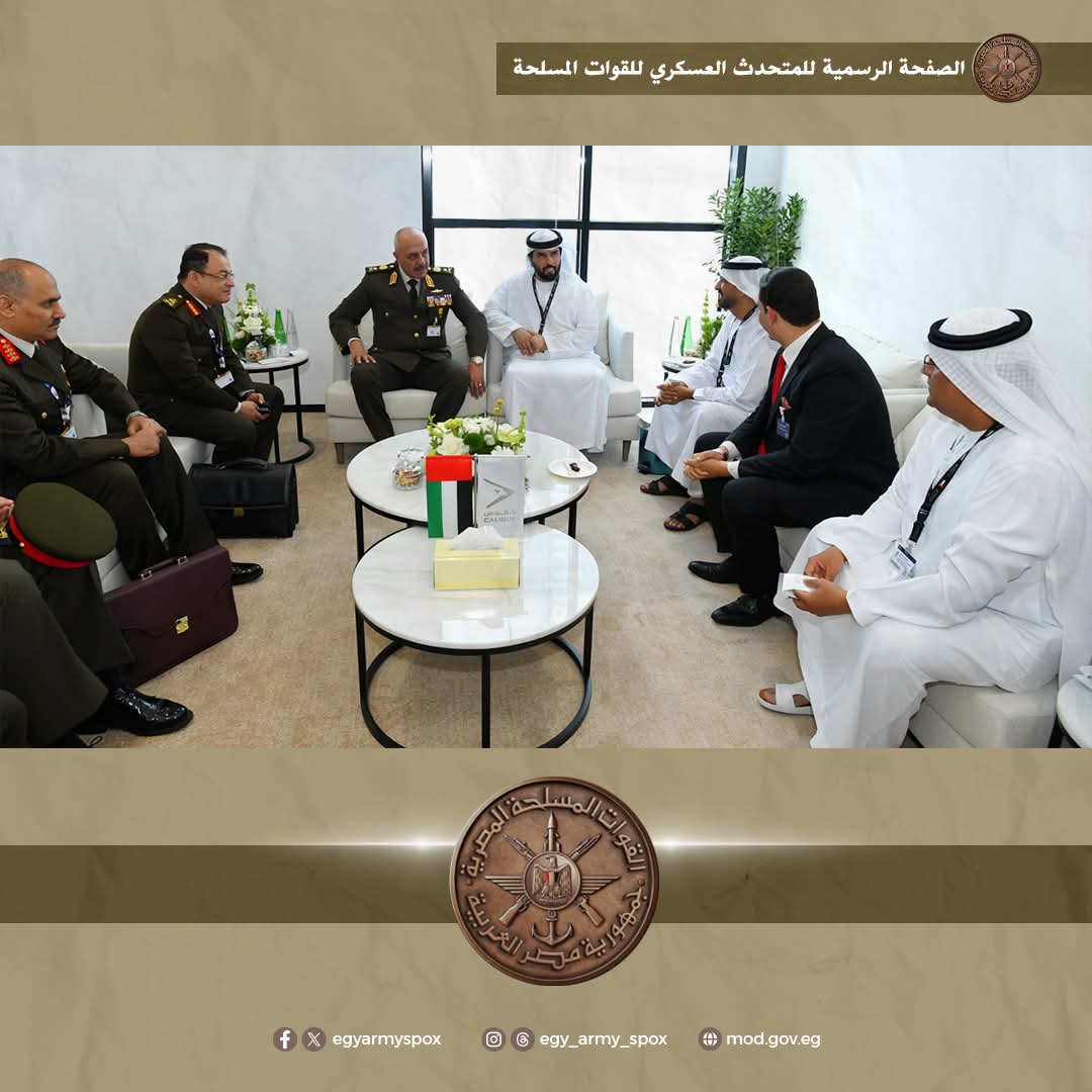 وعلى هامش فعاليات المعرض، التقى الفريق أحمد خليفة رئيس أركان القوات المسلحة الإماراتية، الفريق الركن مهندس عيسى سيف محمد المزروعي، حيث تناول اللقاء مناقشة عدد من الموضوعات ذات الاهتمام المشترك وسبل تعزيز علاقات التعاون العسكري بين القوات المسلحة المصرية والإماراتية.