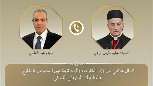 في ختام زيارته إلى العاصمة اللبنانية، أجرى د. بدر عبد العاطي وزير الخارجية والهجرة وشئون المصريين بالخارج اتصالًا هاتفيًا مع غبطة البطريرك الماروني بشارة بطرس الراعي، يوم الأربعاء .