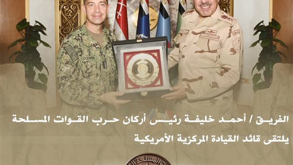 التقى الفريق أحمد خليفة، رئيس أركان حرب القوات المسلحة، الفريق أول براد كوبر، قائد القيادة المركزية الأمريكية، والوفد المرافق له الذي يزور مصر حاليًا.