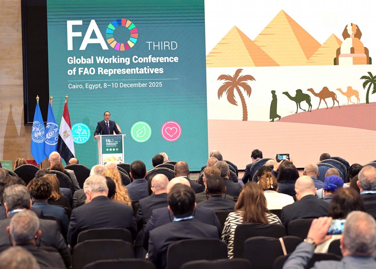 وخلال كلمته، أشار مدبولي إلى أن استضافةَ مصر للمؤتمر العالمي الثالث لممثلي منظمة الأغذية والزراعة، تعكس التزام الدولة المصرية الراسخ بدعم المنظمة ودورها المحوري في تعزيز الأمن الغذائي العالمي، وتطوير النظم الزراعية والغذائية، ودعم الدول الأكثر احتياجاً في مواجهة التحديات الإنسانية والاقتصادية.