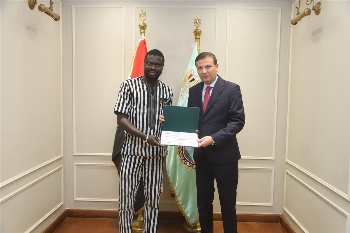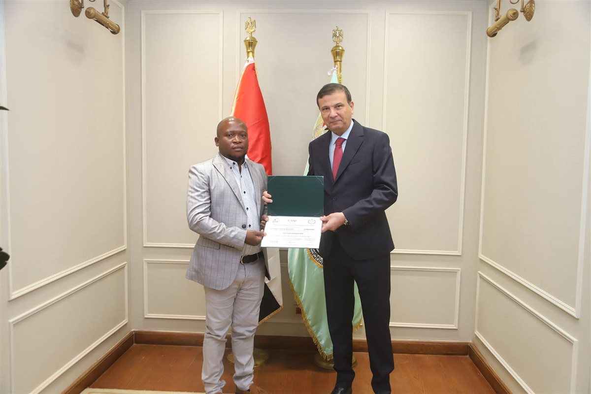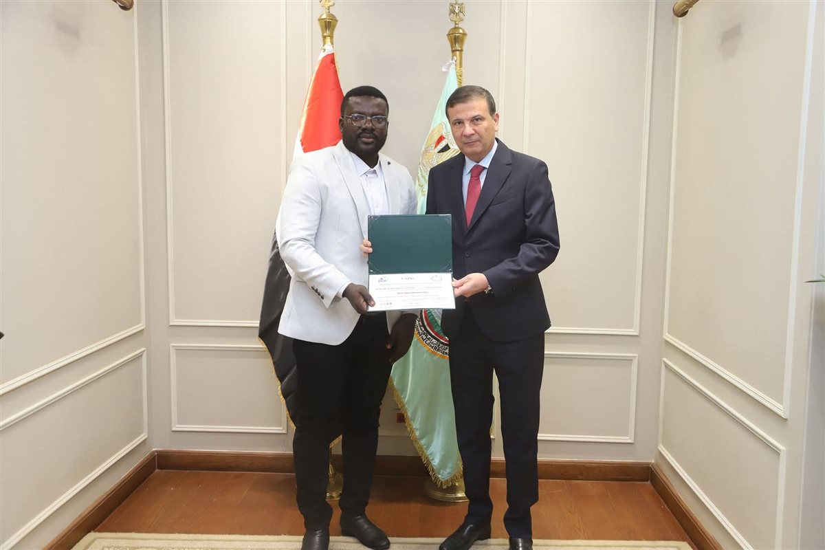 سلم علاء فاروق وزير الزراعة واستصلاح الأراضي، شهادات التخرج لعدد من المتدربين من 10 دول افريقية، أتموا فعاليات البرنامج التدريبي المتخصص حول "إنتاج تقاوي الأرز"، والذي نظمته وزارة الزراعة بالتعاون مع هيئة التعاون الدولي اليابانية، والوكالة المصرية للشراكة من أجل التنمية بوزارة الخارجية.