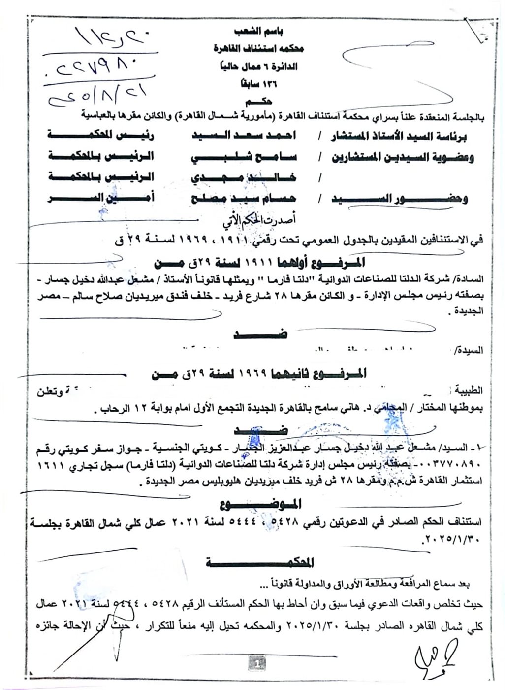 وصدر الحكم في القضية رقم 1911 لسنة 29 ق استئناف عالي، حيث طالبت الدعوى بإلزام شركة «دلتا فارما» بسداد مستحقات العاملة عن أرباح سنوات الخدمة إلى جانب تعويضها عن الفصل التعسفي.