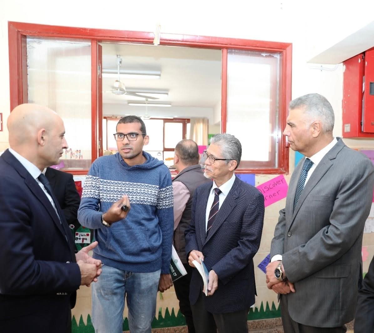 كما تفقدا الفصول الدراسية للاطمئنان على سير الدراسة، ومتابعة شرح المعلمين داخل الفصول، وأجريا حوارًا مع المعلمين حول أساليب التدريس المتبعة بالمدارس المصرية اليابانية، وآليات تطبيق أنشطة «التوكاتسو».
