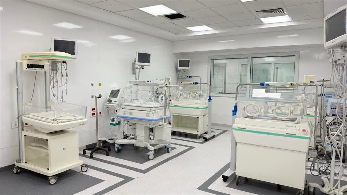 كما تم تشغيل وحدة مناظير حديثة مكوّنة من غرفتي عمليات مجهزتين بالكامل، وتشغيل مبنى الدوران بطاقة 60 سريرًا، ومبنى الطوارئ الجديد بطاقة 42 سرير طوارئ و33 سرير داخلي، وزيادة عدد الحضانات من 8 إلى 26 حضانة، وتشغيل منظار الشعب الهوائية للأطفال وخدمتي رسم المخ ورسم العصب، إضافةً إلى تشغيل أربع غرف عمليات كبرى مجهزة بأحدث الأنظمة الجراحية، وافتتاح العمليات المتقدمة لخدمة الجراحات الدقيقة والمتطورة، وتشغيل قسم نساء وتوليد متكامل يضم غرفة عمليات قيصرية وغرف ولادة طبيعية وغرف ما قبل الولادة.
