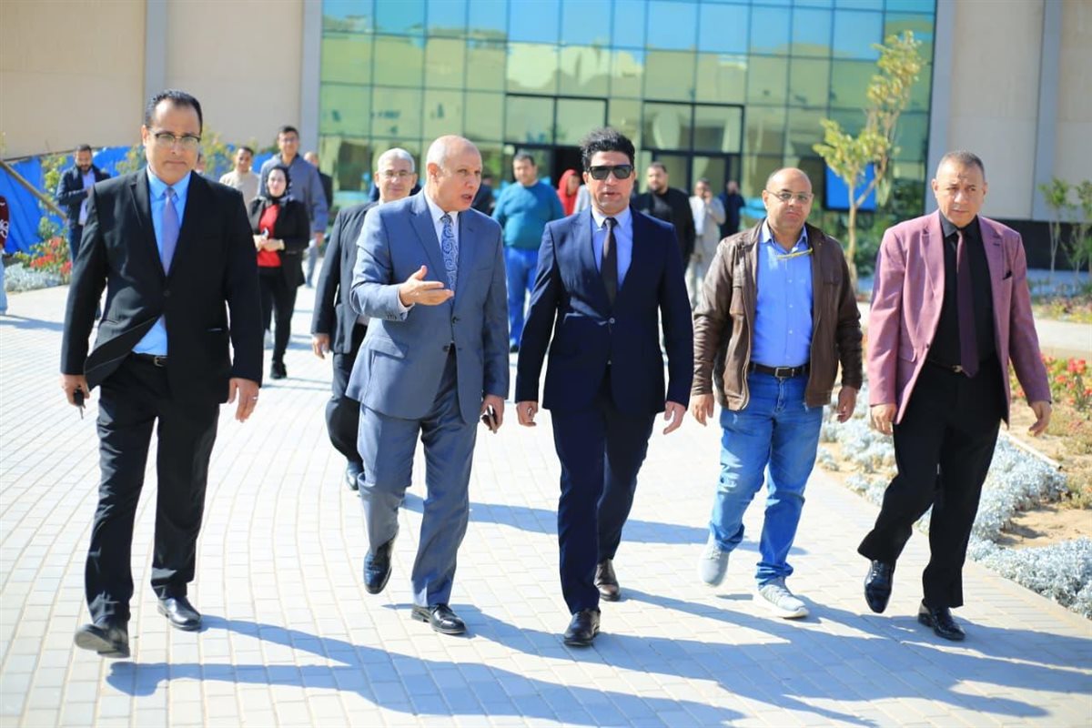 وخلال الزيارة، استعرض مسؤولو الجامعة إمكاناتها التعليمية، حيث تقام على مساحة 60 ألف متر مربع، وتضم 11 كلية، بدأت الدراسة فعليًا في 4 كليات منها، بإجمالي عدد طلاب بلغ نحو 10 آلاف طالب.
