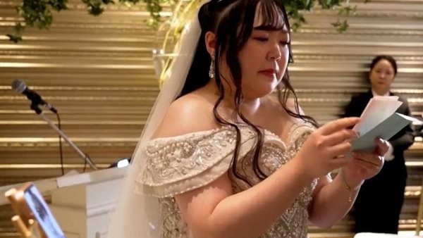 قاعة زفاف في غرب اليابان شهدت لحظة غير اعتيادية، حيث وقفت العروس يورينا نوجوتشي مرتدية فستاناً أبيض وتاجاً لامعاً، تتأثر بكلمات عريسها الذي لم يكن يقف أمامها، بل ظهر بصورة رقمية وصوت اصطناعي.