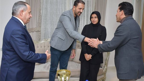 وزير الشباب ومحافظ بورسعيد يقدمان واجب العزاء في وفاة السباح يوسف محمد بمنزله ببورسعيد