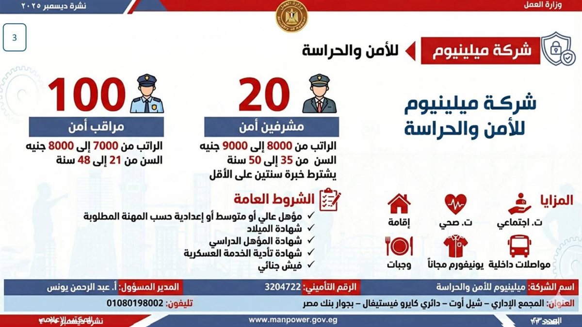 أعلن وزير العمل، محمد جبران، اليوم الأحد، عن إصدار نشرة التوظيف نصف الشهرية، والتي تتضمن فرص عمل جديدة متاحة في عدد من المحافظات.