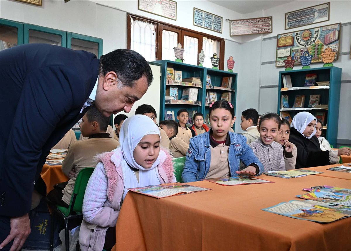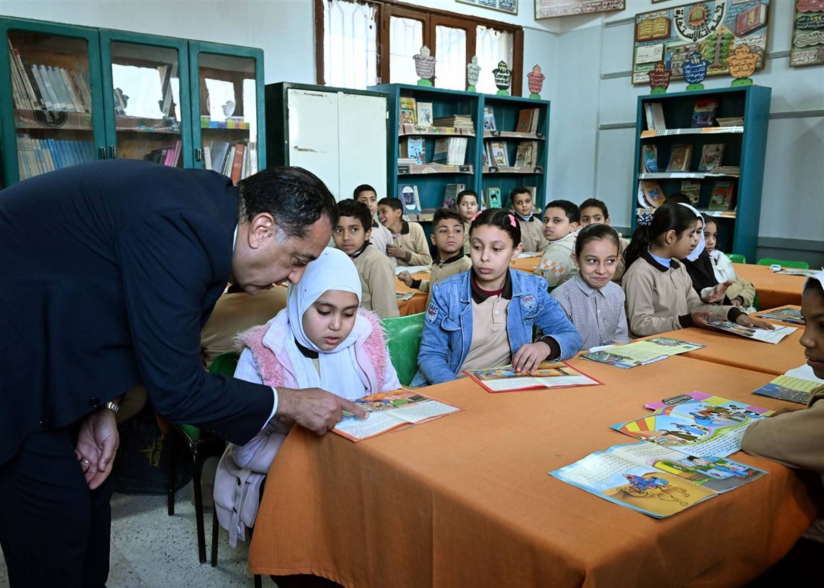 وعقب ذلك، زار مدبولي مكتبة المدرسة، حيث وقفت إحدى الطالبات لقراءة نص من أحد الكتب الدينية، وأشاد بمستواها، كما توقف أمام لوحة معلقة على حائط المدرسة توضح بعض النصائح والإرشادات للطلاب.