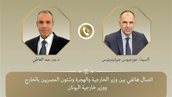 أجرى الدكتور بدر عبد العاطي وزير الخارجية والهجرة وشئون المصريين بالخارج و"جيورجوس جيرابيتريتيس" وزير الخارجية اليوناني، اليوم الأربعاء ٢٤ ديسمبر، في إطار التواصل الدوري لبحث سبل تعزيز العلاقات الاستراتيجية بين البلدين وتناول التطورات الإقليمية.