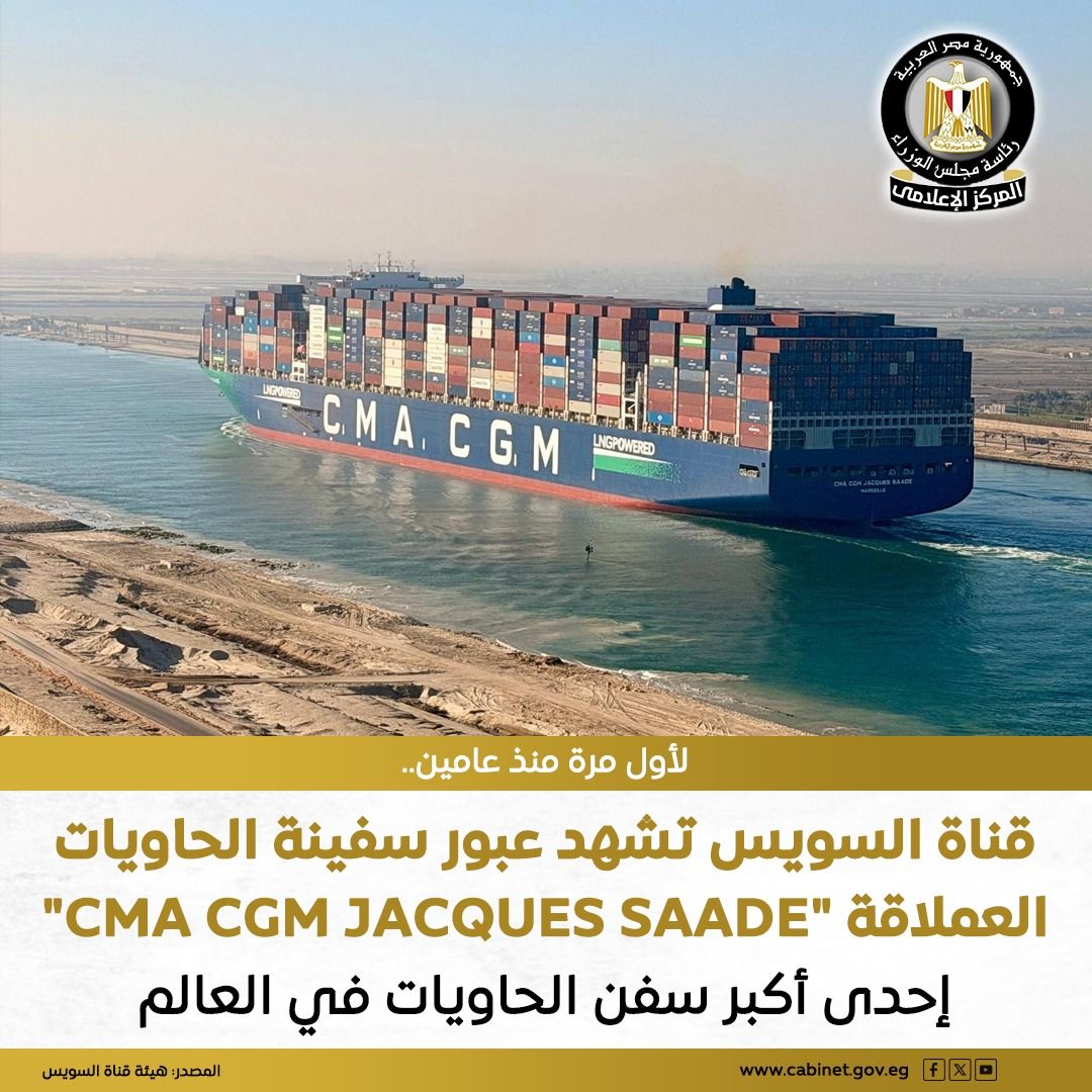 أعلنت هيئة قناة السويس بدء مرحلة جديدة في عودة سفن الحاويات التابعة للخطوط الملاحية الكبرى للعبور عبر القناة، حيث شهدت حركة الملاحة عبور سفينتي حاويات عملاقتين تابعتين لمجموعة «CMA CGM» الفرنسية ضمن قافلتي الشمال والجنوب، وذلك عقب الإعلان عن العودة الكاملة لسفن المجموعة الفرنسية إلى القناة.