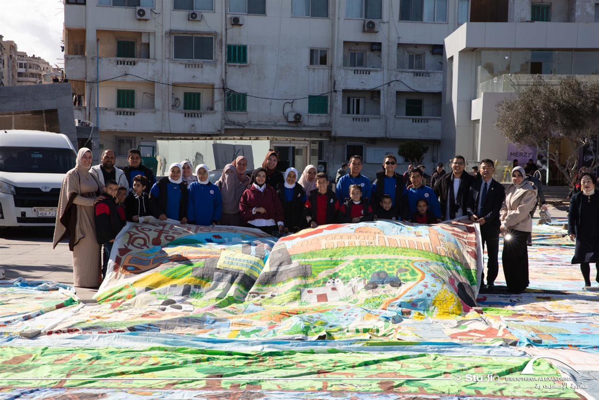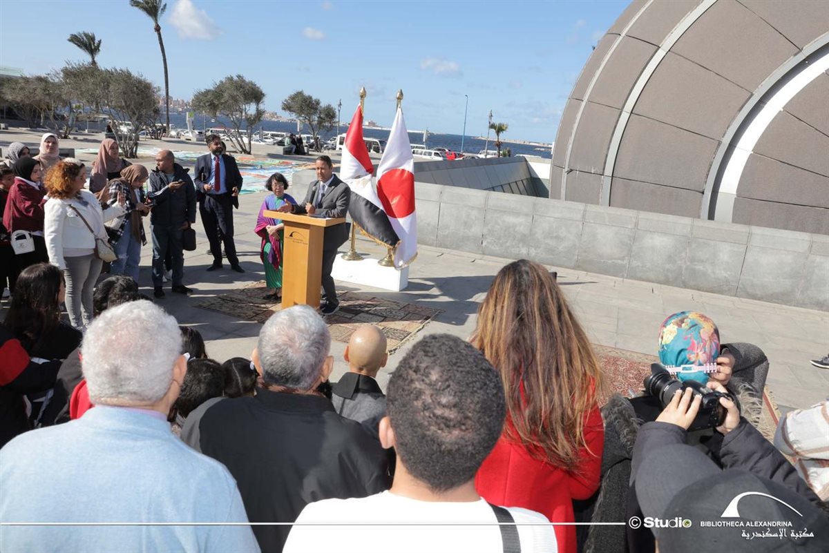 استضافت مكتبة الإسكندرية صباح اليوم، احتفالية كبرى للكشف عن "أكبر لوحة مرسومة في العالم" بالساحة الخارجية للمكتبة، والتي شارك في إبداعها طلاب المدارس المصرية اليابانية (EJS) بالتعاون مع أطفال من دولة اليابان، وذلك بتنظيم مشترك بين جمعية "Earth Identity Project" اليابانية ومكتبة الإسكندرية، وبالتنسيق مع وزارة التربية والتعليم وسفارة اليابان بالقاهرة، في حدث يجسد أسمى معاني التعاون الثقافي والتربوي بين البلدين.
