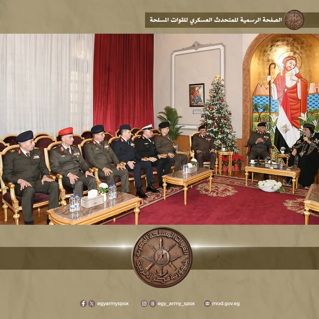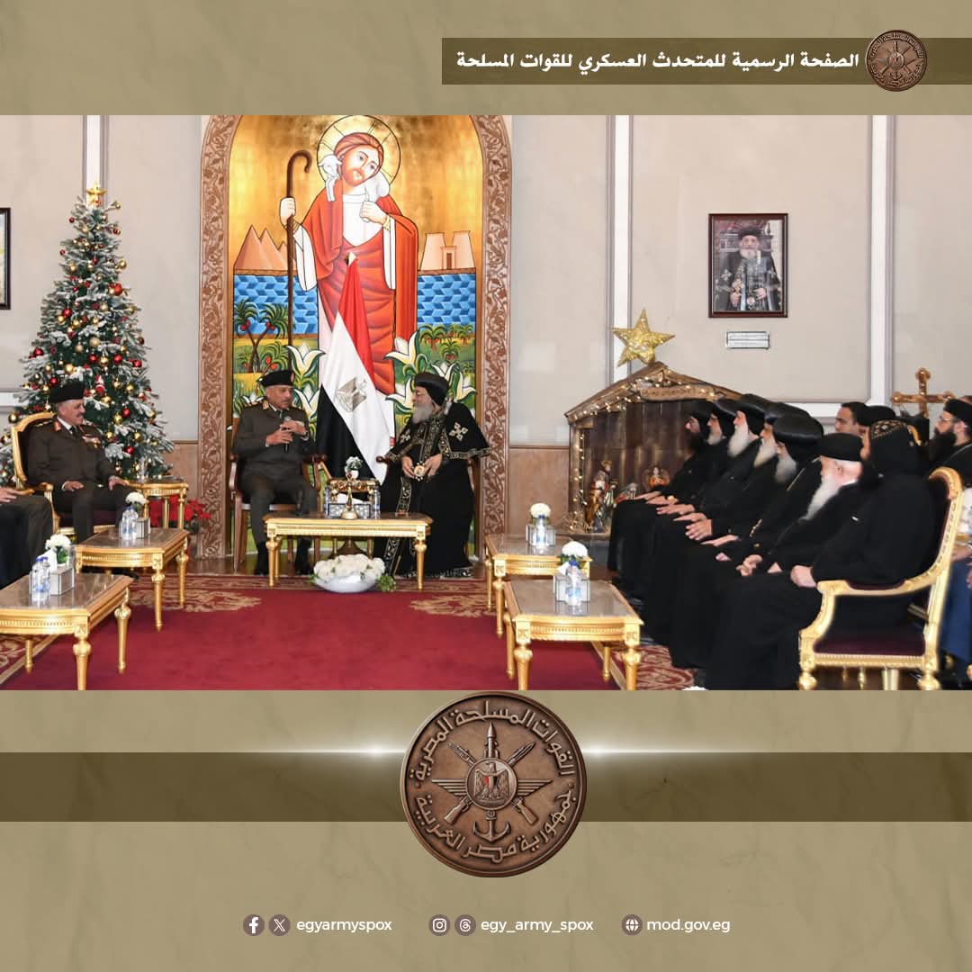 قام الفريق أول / عبد المجيد صقر القائد العام للقوات المسلحة وزير الدفاع والإنتاج الحربى يرافقه الفريق / أحمد خليفة رئيس أركان حرب القوات المسلحة وقادة الأفرع الرئيسية وعدد من قادة القوات المسلحة بتقديم التهنئة لقداسة البابا تواضروس الثانى بابا الإسكندرية وبطريرك الكرازة المرقسية بمناسبة عيد الميلاد المجيد وذلك بمقر الكاتدرائية المرقسية بالعباسية .