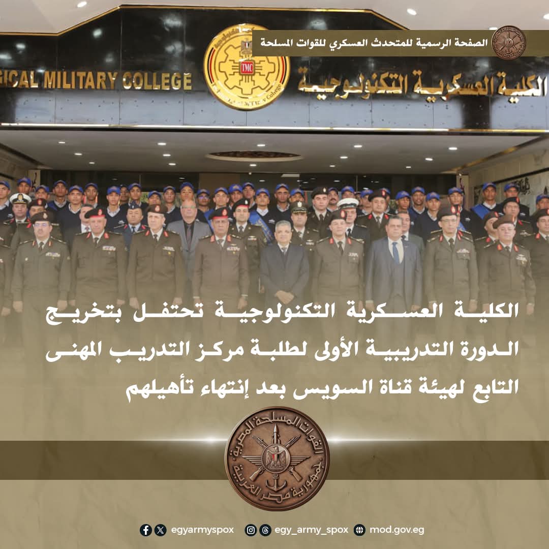 نظمت الكلية العسكرية التكنولوجية مراسم تخريج الدورة التدريبية الأولى لطلبة مركز التدريب المهني ببورفؤاد، التابع لهيئة قناة السويس بعد إنتهاء فترة تأهيلهم.