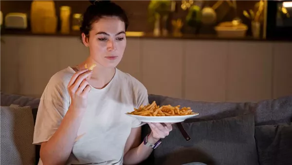 الاعتماد على وجبات خفيفة غير صحية في المساء.
