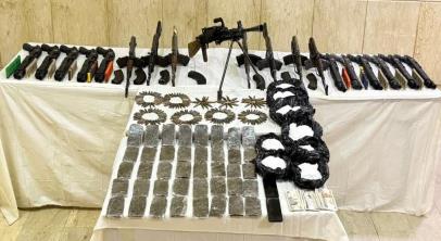 وبحوزة المتهمين تم ضبط قرابة نصف طن من المواد المخدرة المتنوعة (حشيش، شابو، هيدرو)، بالإضافة إلى 77 قطعة سلاح ناري شملت (53 بندقية آلية، 13 بندقية خرطوش، 10 أفراد خرطوش، ورشاش جرينوف).
