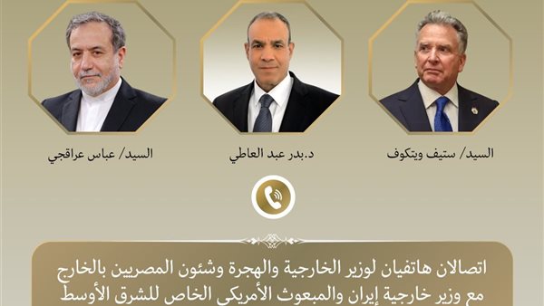 أجرى الدكتور بدر عبد العاطي وزير الخارجية والهجرة وشئون المصريين بالخارج اتصالين هاتفيين بكلٍ من "عباس عراقجي" وزير خارجية إيران، و"ستيف ويتكوف" المبعوث الأمريكي الخاص للشرق الأوسط موخراً، حيث تناولت الاتصالات المستجدات بالمنطقة في ظل تصاعد حدة التوتر بالإقليم.