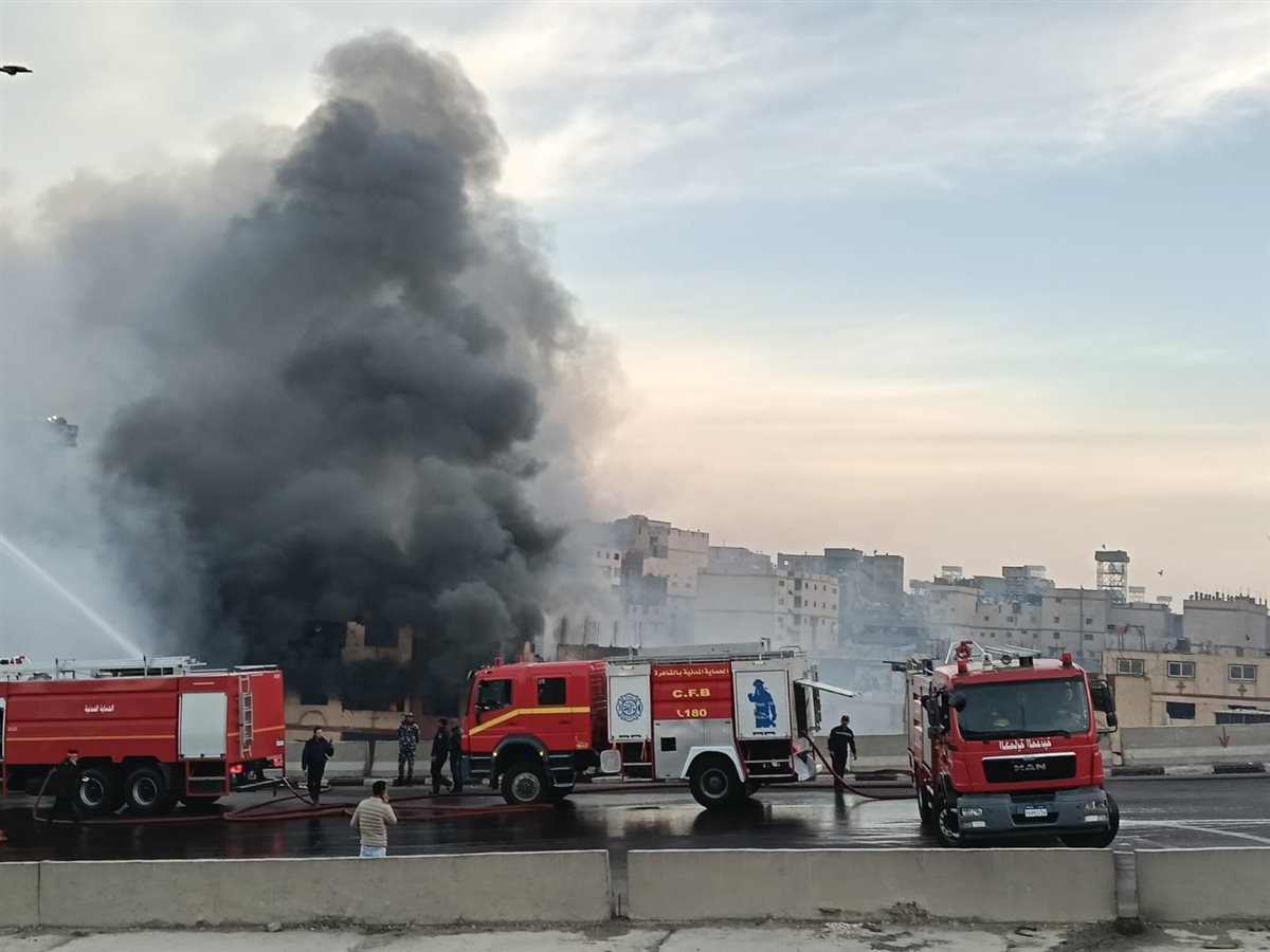 الدفع 10 سيارات إطفاء للسيطرة على حريق هائل بمنطقة الزرايب في منشية ناصر