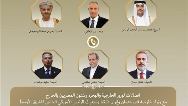 في إطار تنفيذ توجيهات رئيس الجمهورية بخفض التصعيد في منطقة الشرق الأوسط، أجرى د. بدر عبد العاطي وزير الخارجية والهجرة وشئون المصريين بالخارج اتصالات مكثفة بكلٍ من "عباس عراقجي" وزير خارجية إيران، والسيد "ستيف ويتكوف" المبعوث الأمريكي الخاص للشرق الأوسط، والشيخ "محمد بن عبد الرحمن"، رئيس وزراء ووزير خارجية قطر، والسيد "هاكان فيدان"، وزير خارجية تركيا، والسيد "بدر بن حمد البوسعيدي"، وزير خارجية سلطنة عمان، حيث تناولت الاتصالات المستجدات بالمنطقة في ظل تصاعد حدة التوتر بالإقليم.