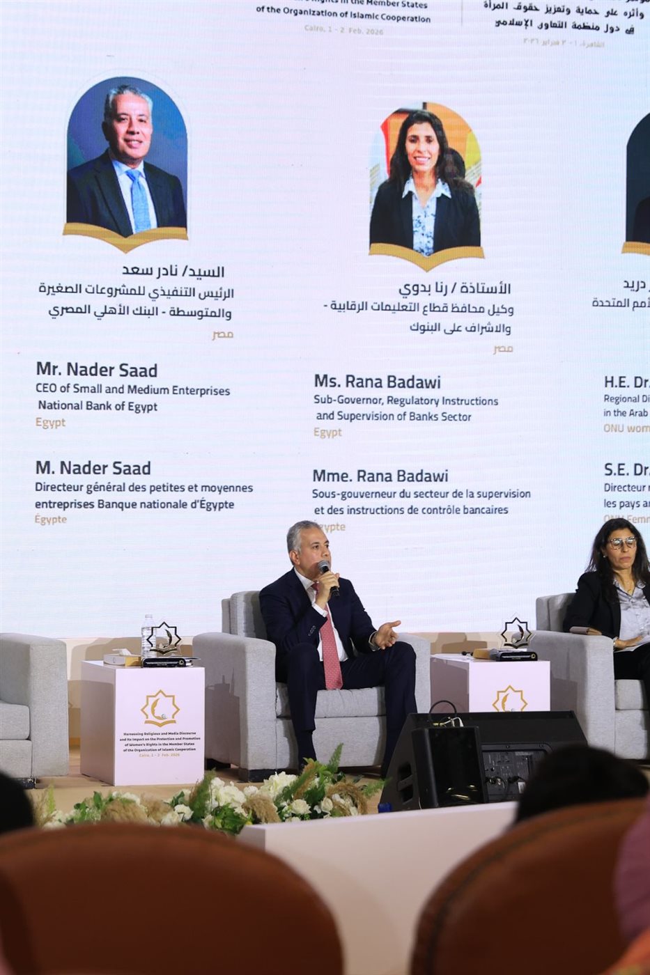 وأضاف سعد خلال كلمته في مؤتمر استثناء الخطاب الديني والإعلامي واثرة على حماية وتعزيز حقوق المرأة في دول منظمة التعاون الإسلامي تحت رعاية الرئيس عبد الفتاح السيسي أن نحو 40% من قاعدة عملاء البنك الأهلي المصري من السيدات، وهو ما يعكس إيمان البنك بأن تمكين المرأة ركيزة أساسية للتنمية الاقتصادية المستدامة.