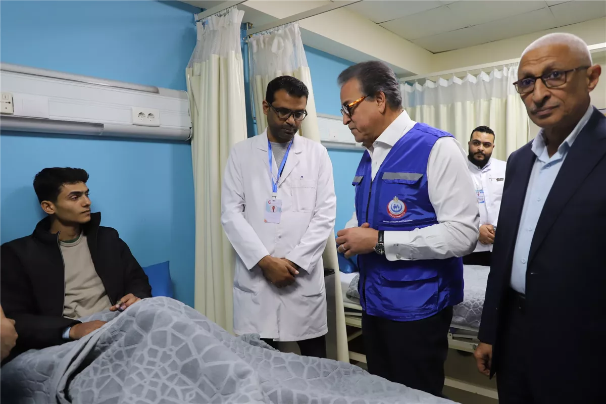 وزير الصحة ومحافظ شمال سيناء يلتقيان المصابين الفلسطينيين بمستشفى العريش