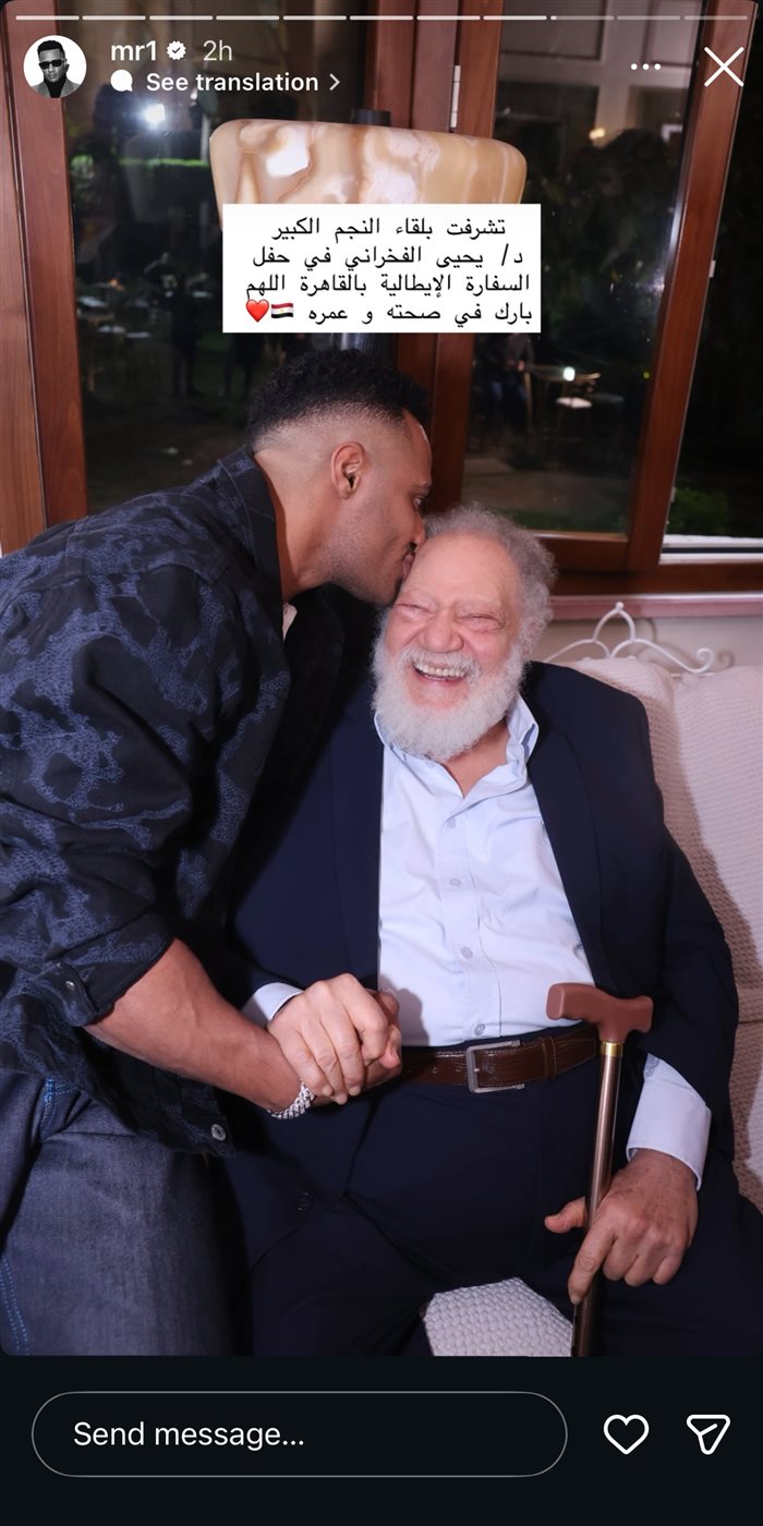 وأعرب محمد رمضان عن سعادته بلقاء يحيى الفخراني، حيث علّق على الصورة قائلًا:«تشرفت بلقاء النجم الكبير د. يحيى الفخراني في حفل السفارة الإيطالية بالقاهرة، اللهم بارك في صحته وعمره».