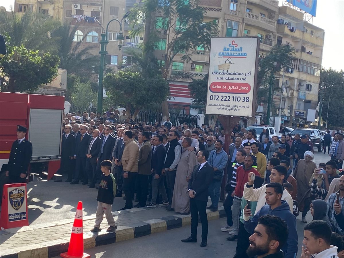 وشهدت الجنازة اصطفاف القيادات الأمنية لتقديم واجب العزاء لأسرة الفقيد، مؤكدين أن الراحل كان مثالاً في الانضباط والإخلاص في أداء عمله طوال سنوات خدمته، كما توافد المئات من أبناء المنيا للمشاركة في مراسم التشييع تعبيراً عن تقديرهم لمسيرته المهنية وسيرته الطيبة.