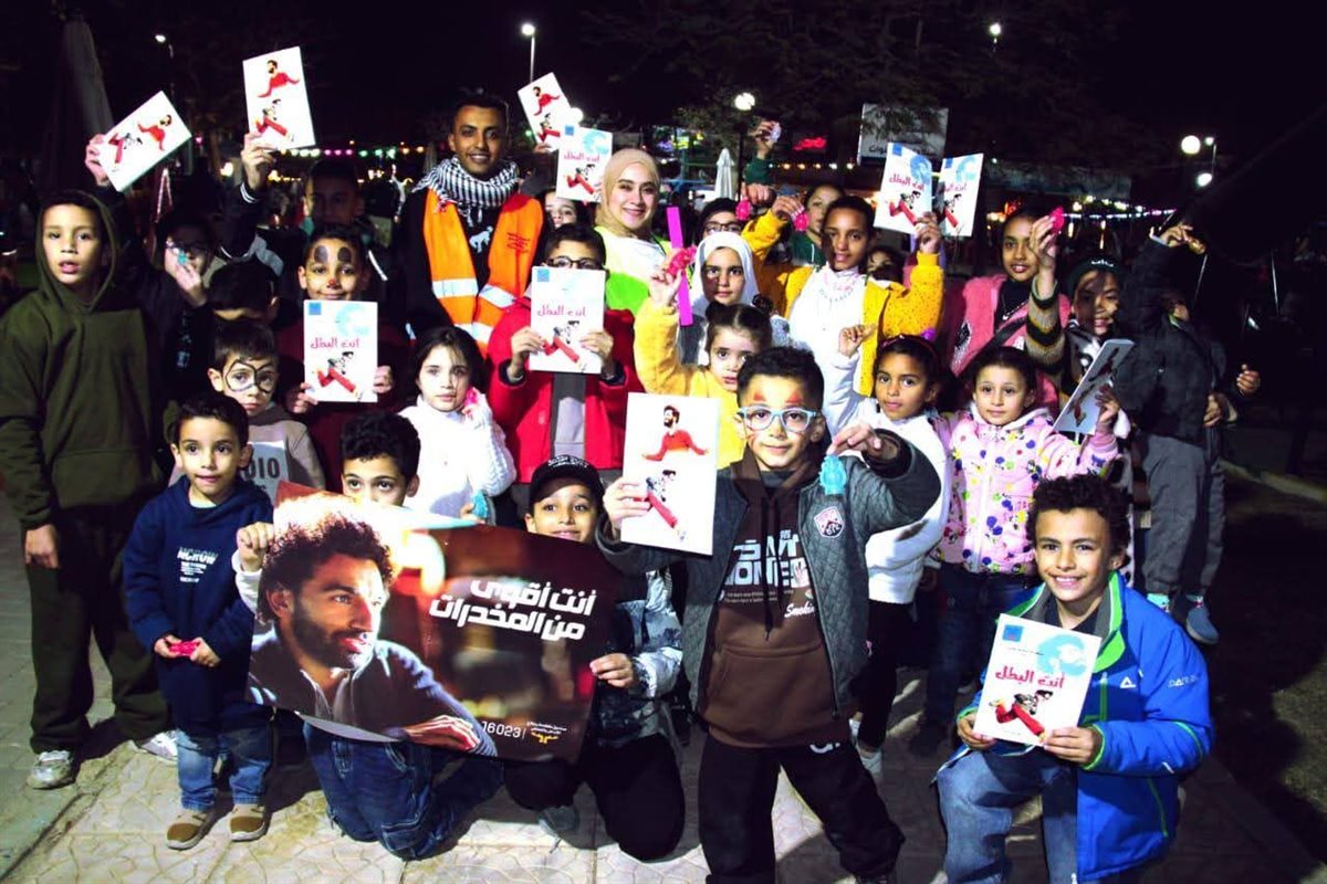 كما تم تنفيذ ورش حكي وألعاب تفاعلية متعددة للأطفال تتضمن الرسم وتلوين الكراسات واستخدام الأساليب الإبداعية التي تتماشى مع المراحل العمرية للأطفال كذلك عروض فنية ورياضية وثقافية تستهدف رفع الابتكار والتفكير لدى الأطفال وتنمية مهارات التواصل والعمل الجماعي لديهم وربط هذه المهارات بمواجهة مشكلة تعاطي وإدمان المخدرات والتحذير من خطورة التدخين.