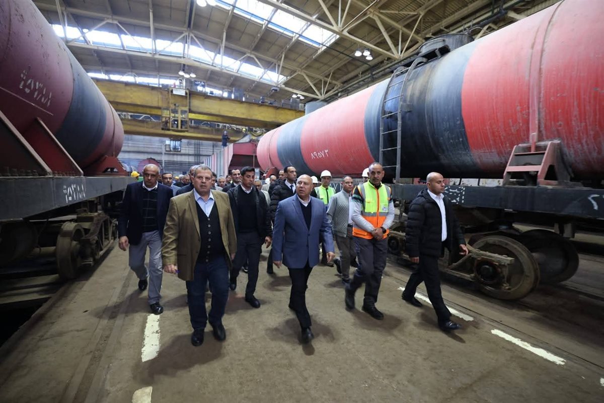 واستمع وزير النقل خلال جولته إلى شرح تفصيلي حول منظومة التطوير الشامل لمختلف طرازات عربات البضائع من بينها (عربات الصندوق - عربات الهوبر الخاصة بنقل الغلال والبازلت - عربات الصهاريج لنقل السوائل - عربات السطح الخاصة بنقل الحاويات والمركبات - عربات الكشف المفتوح - عربات السبنسة وغيرها) ، والتي تُستخدم في نقل المواد الخام ومتطلبات الإنتاج بمختلف الحمولات عبر شبكة خطوط السكك الحديدية على مستوى الجمهورية.