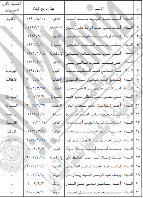 مع الاحتفاظ بالمصرية.. السماح لـ42 مواطنًا بالحصول على الجنسية الأجنبية
