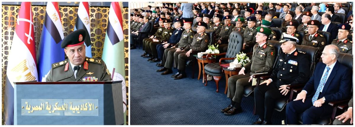 وألقى اللواء أ.ح. محمد صلاح التركي، مدير الأكاديمية العسكرية المصرية، كلمة أشار فيها إلى حرص القيادة العامة للقوات المسلحة على الدعم البناء واللامحدود لتطوير وتحديث العملية التعليمية والنواحي الفنية والإدارية داخل كليات الأكاديمية، مؤكدًا أن اختيار الطلبة تم بكل نزاهة وشفافية، مشيرًا إلى الجهد المبذول لتحويل شخصية الطلبة المستجدين من الحياة المدنية إلى الحياة العسكرية، ليكونوا قادرين على تنفيذ كافة المهام التي سيُكلفون بها في المستقبل.