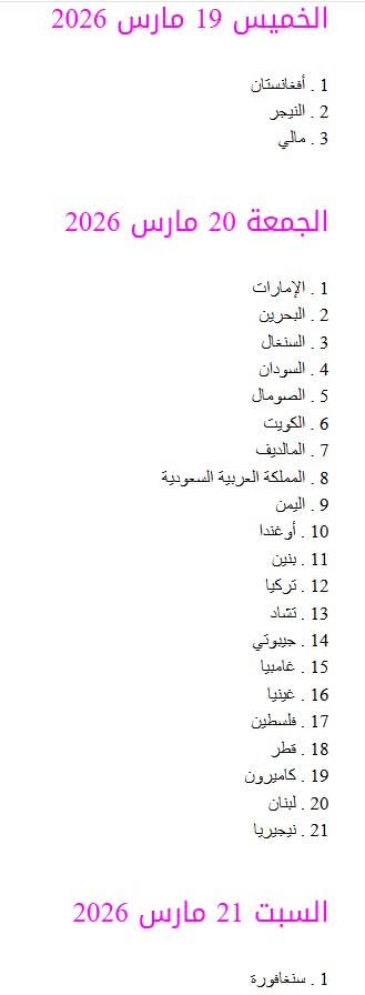 أما الدول التي لم تعلن بعد أو لم تتوفر مصادر:
