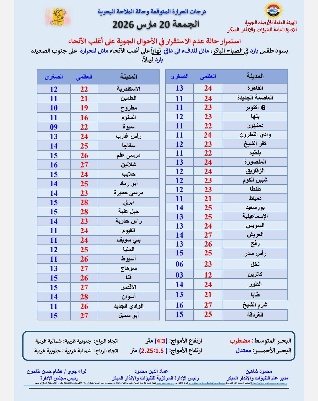 تحذيرات هامة من الهيئة العامة للأرصاد :