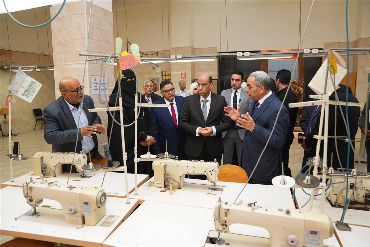 واستمع الوزير والمحافظ إلى إمكانيات المركز الذي يضم مبنيين رئيسيين هما المبنى الإداري ومبنى الورش بإجمالي مساحة تقارب 5375 مترًا مربعًا، ويشتمل على معامل وقاعات تدريب وإدارة، إلى جانب مجموعة متنوعة من الورش التدريبية المتخصصة مثل ورش السباكة الصحية، والمباني والسيراميك، والشدات المعدنية، ونجارة الأثاث، والتفصيل والحياكة، واللحام وتشكيل المعادن، وميكانيكا السيارات، والتبريد والتكييف، فضلاً عن ورش صيانة الأجهزة المنزلية والتركيبات الكهربائية.